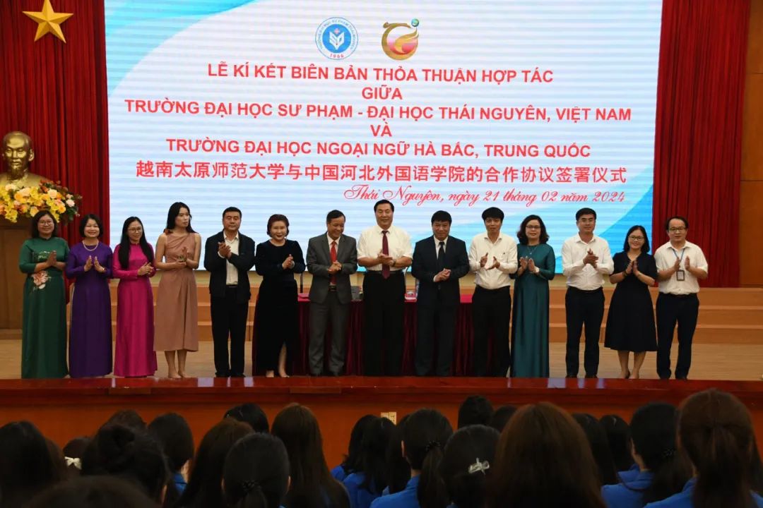 会谈结束后,双方领导在近300名师生代表的见证下,签署了《河北外国语学院和越南太原师范大学进一步加强交流与合作的协议》,该协议将推动两校的交流与合作迈入高质量发展时代。