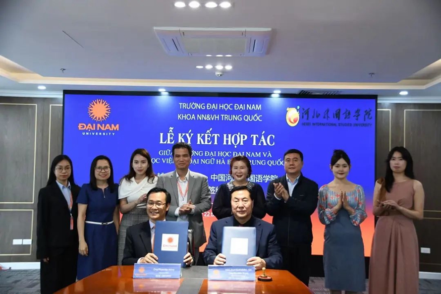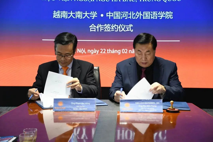 河北外国语学院孙建忠校长与越南大南大学范文宏校长签署两校合作协议