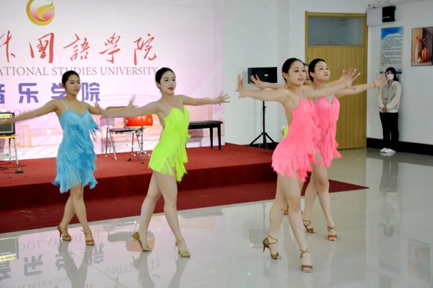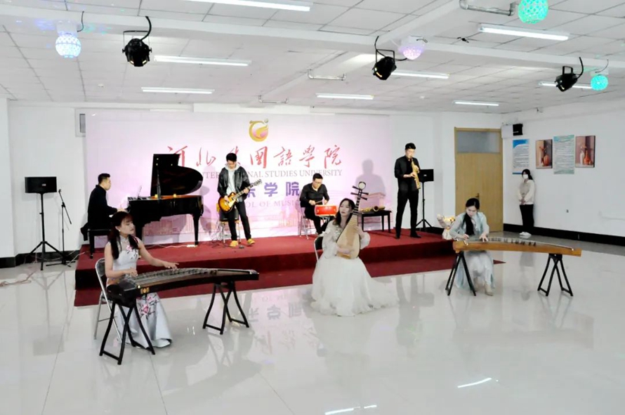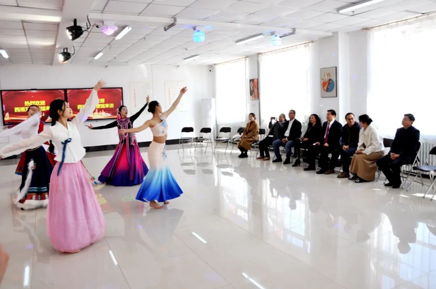 在音乐学院,代表团观看了由音乐学院师生带来的声乐、舞蹈、器乐表演,并与音乐学院师生合影留念。