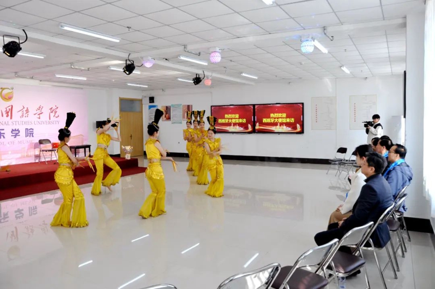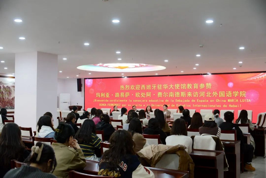 西班牙王国驻华大使馆代表团表示,河北外国语学院西班牙语专业建设得非常出色,大使馆愿意为河北外国语学院与西班牙王国的大学牵线搭桥,促成双方的教育合作。