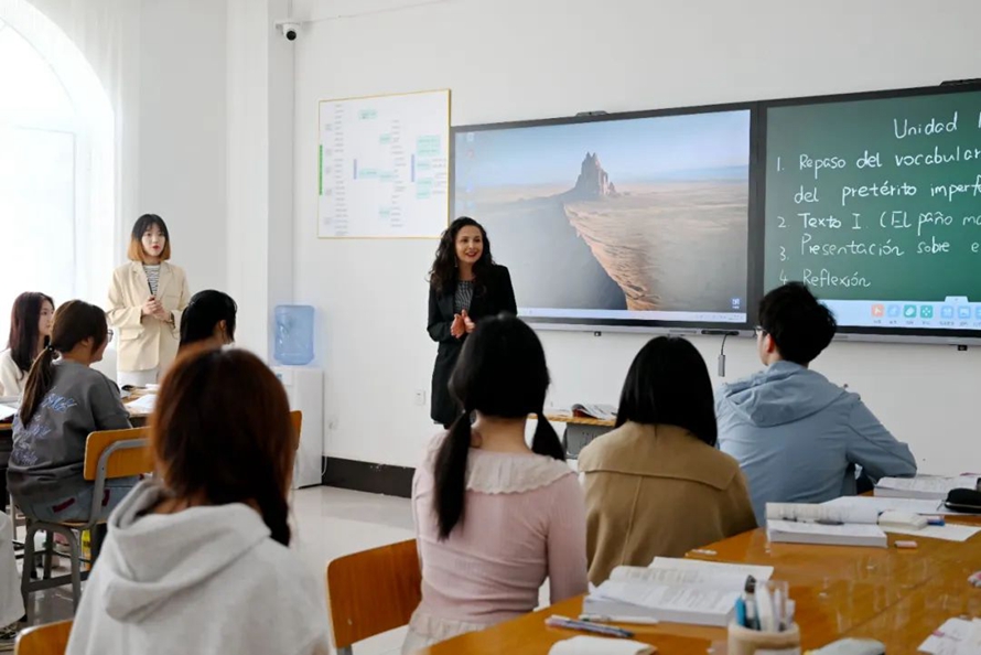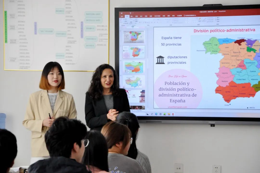 代表团一行还在河北外国语学院西意葡语言学院观摩课堂,并与西班牙语专业生师生代表、英语专业师生代表在融洽的氛围中进行了深入的座谈交流。交流会结束后,同学们纷纷表示,自己一定会好好学习西班牙语,将来用自己的语言能力促进中西两国友好合作及发展。