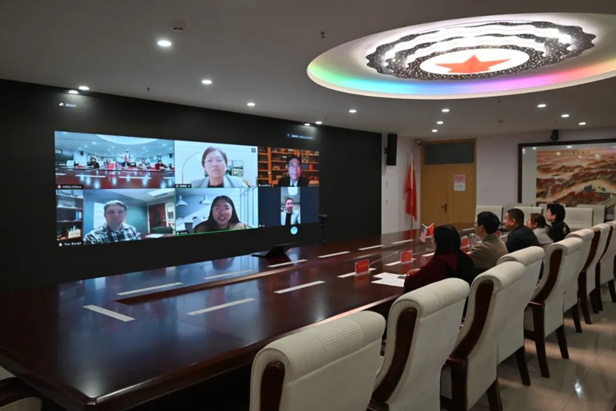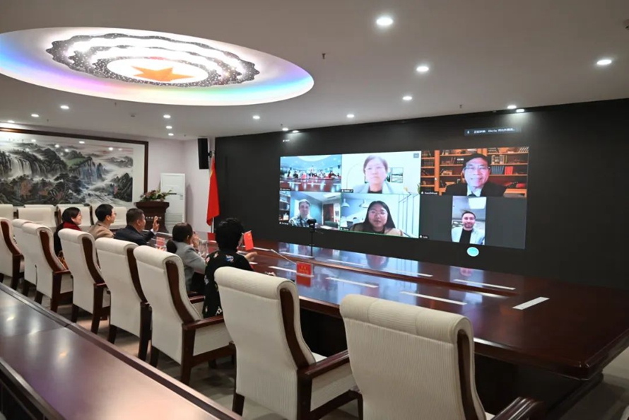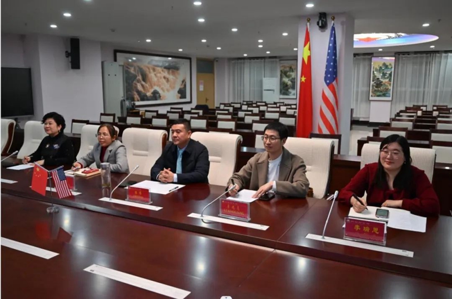 为促进中美教育交流合作,2024年3月22日晚9时,河北外国语学院与美国多恩大学召开线上视频会议,洽谈合作事宜。河北外国语学院副校长陈伟、校委委员、英语学院院长李晓亮,副院长张培,副院长李瑞思,国际处副处长王云利;美国多恩大学副校长路易斯教授、国际项目部主任蒂姆博士出席本次会议。
