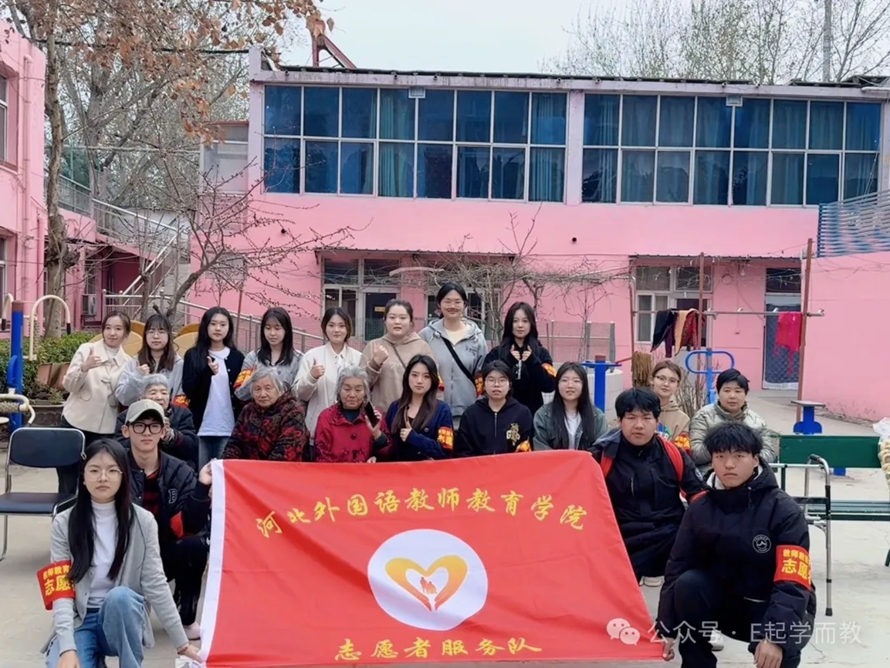 河北外国语学院教师教育学院于2024年3月8日成立了志愿者服务队,组织学生积极参与助老、助残、义教、环境清理、关注留守儿童等多个志愿服务项目。16日,志愿者服务队走进敬老院,与老人们亲密互动,清扫卫生,送上生活用品,认真倾听他们的人生故事,组织了一场艺术表演,为老人们送去了无尽的温暖和关怀。
