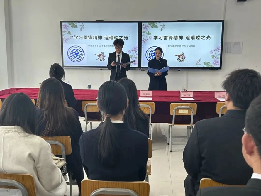 河北外国语学院航空旅游学院于3月15日,举办了“弘扬雷锋精神”主题活动。19日,开展了以“弘扬雷锋精神,争做航空标兵”为主题的雷锋精神手抄报比赛。20日,举办了一场以“学雷锋精神,追璀璨微光”为主题的知识竞答活动。