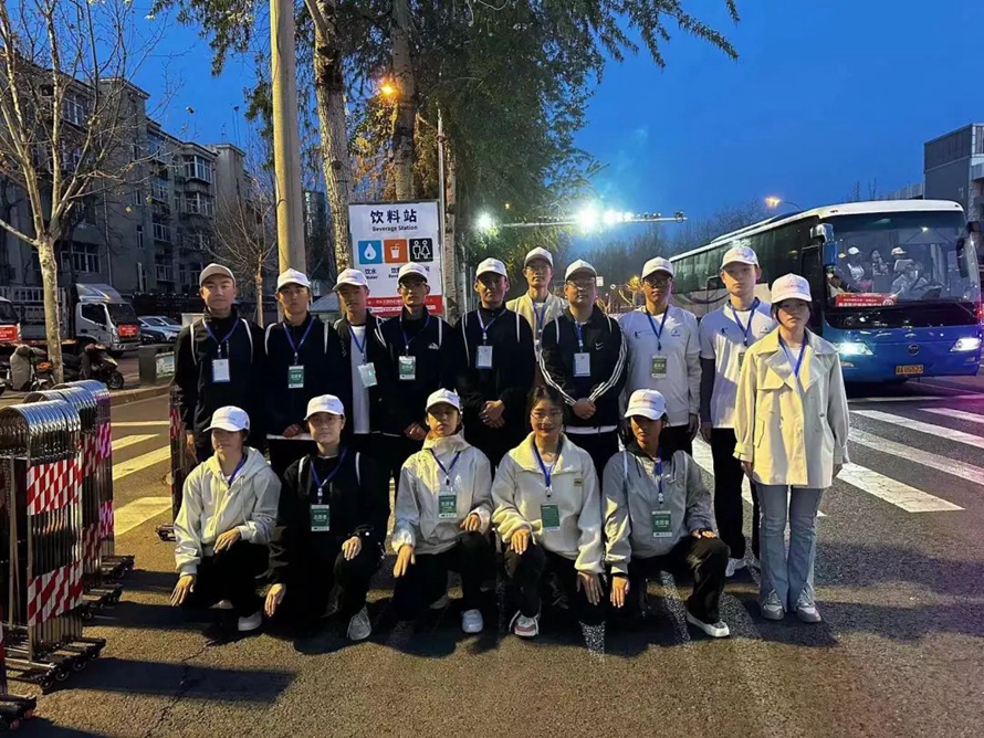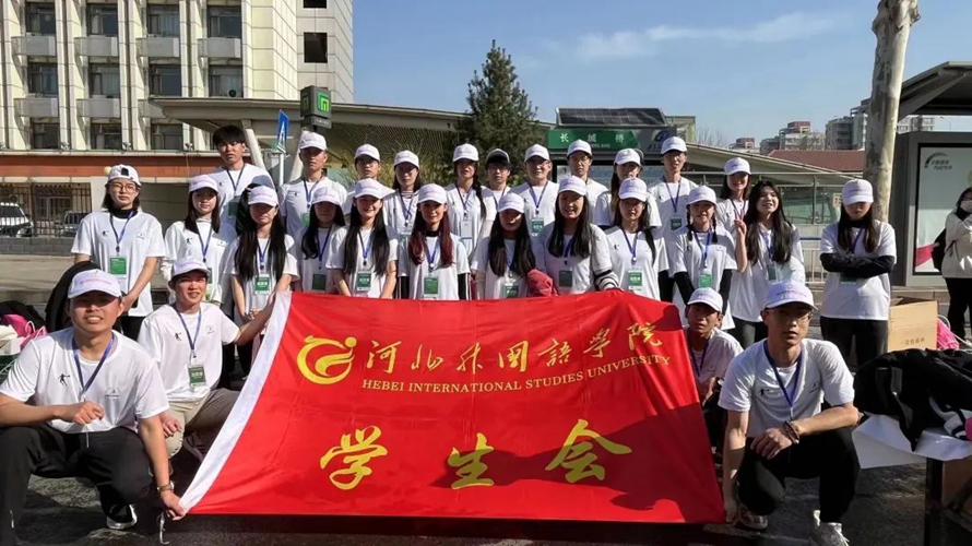 2024年3月31日,石家庄市马拉松盛大开幕。河北外国语学院7名教师携全校436名志愿者,在中华大街分道、补给站、计时点、分道点、折返计时点等16个马拉松志愿服务点,以语言翻译志愿者、物资补给志愿者、加油呐喊志愿者等身份,共同参与了这一体育盛事。