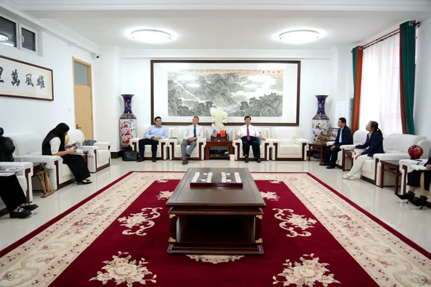 2024年10月15日,美国哈町大学代表专程访问河北外国语学院,河北外国语学院董事长、校长孙建忠院士亲切会见哈町大学副校长柯林斯博士、中国和亚洲项目主任凌雄辉先生。