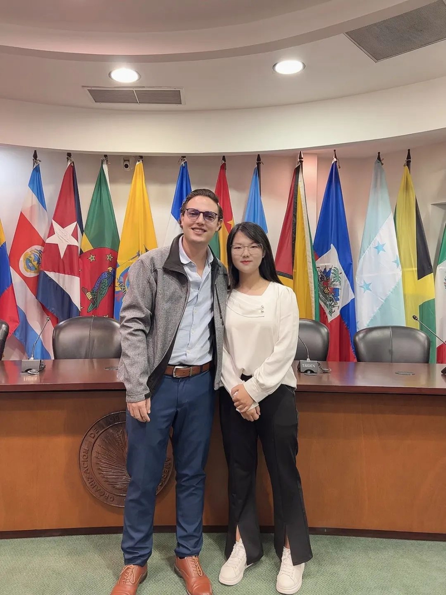 2024年8月,怀揣“用语言连接世界”的初心,罗旭朝踏上哥斯达黎加的土地,成为联合国和平大学的一员。面对陌生的学术环境与文化差异,她以“归零心态”迅速融入:课堂上,她潜心钻研国际法与国际事务知识,构建起跨学科知识体系;课堂外,她积极参访美洲人权法院、美洲人权研究所以及正义与国际法中心等国际机构,在实地调研中深化对全球治理的理解。这些经历让她深刻认识到语言背后的力量,也坚定了她将来投身国际事务的梦想。