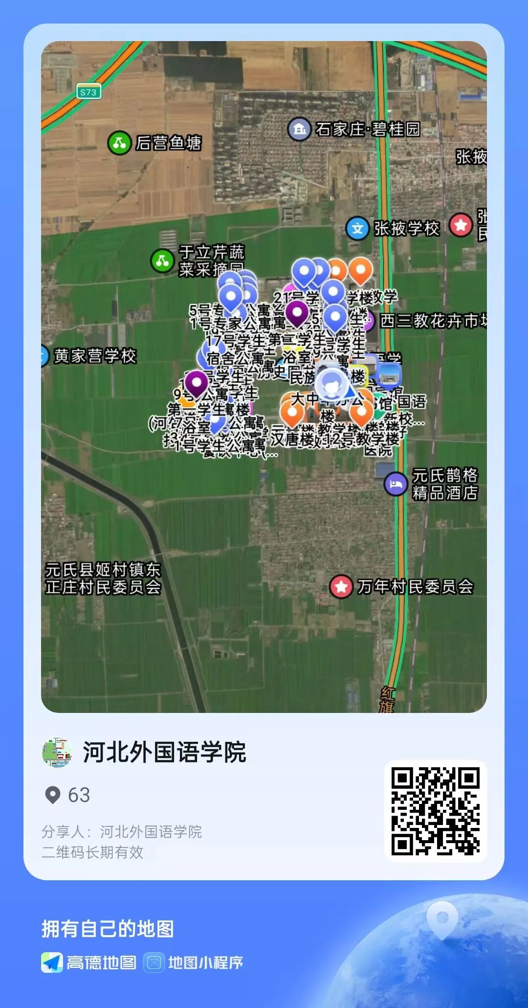 扫右下角二维码进行校内导航(请到校后使用)百度导航搜索楼宇名称亦可到达(校外就可使用)