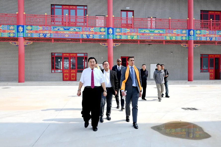 初入校园,兼具现代气息与文化底蕴的特色楼宇便吸引了大使一行的目光,戈麦斯大使由衷赞叹:“这里有中国的大气风范。” 在孙建忠院士的引领下,代表团先后走访了国际友好医院、万国图书馆、汉唐教学楼、各专业实训室、封龙书院大学堂等场所,全方位感受学校的办学特色与国际化建设成果。在国际友好医院,大使详细了解了河北外国语学院国际医学院的学科布局与国际合作成效,对学校深耕医学教育国际化的实践给予高度评价。
