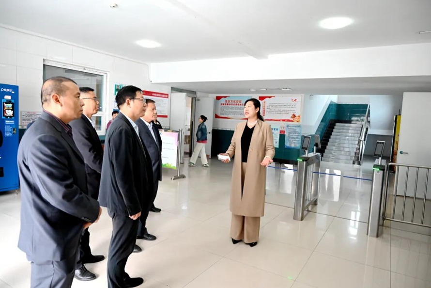 在河北外国语学院党委委员、副校长陈乐音的陪同下,元氏县第一中学考察团先后参观了学校会议室、智慧大脑、大数据中心、管理决策舱、封龙书院大学堂及学生公寓等场所。每到一处,考察团都详细询问相关建设情况,对河北外国语学院在智慧校园建设、传统文化传承与国际化办学融合等方面的探索成果表示赞赏。