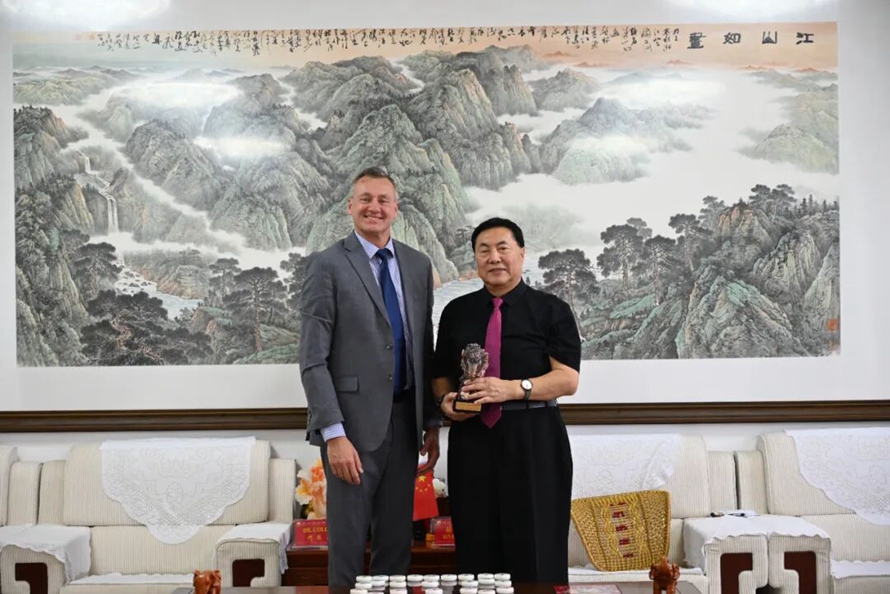 此次访问为两校深化合作奠定了坚实基础。临别之际,双方就拓展留学生交流渠道、推进多领域合作达成共识。孙建忠院士向代表团赠送纪念品并表示,期待两校以此次访问为契机,持续深化合作内涵,丰富合作形式,在人才联合培养、学术交流等方面取得更多成果。大卫·柯林斯副校长也表达了期待,希望未来能与孙建忠院士在学校新建的游泳馆共话合作、共叙友谊。