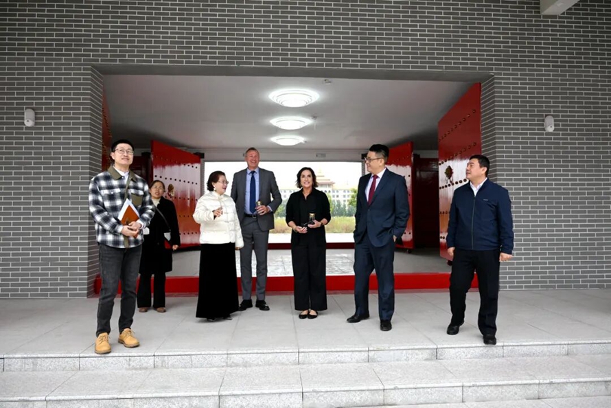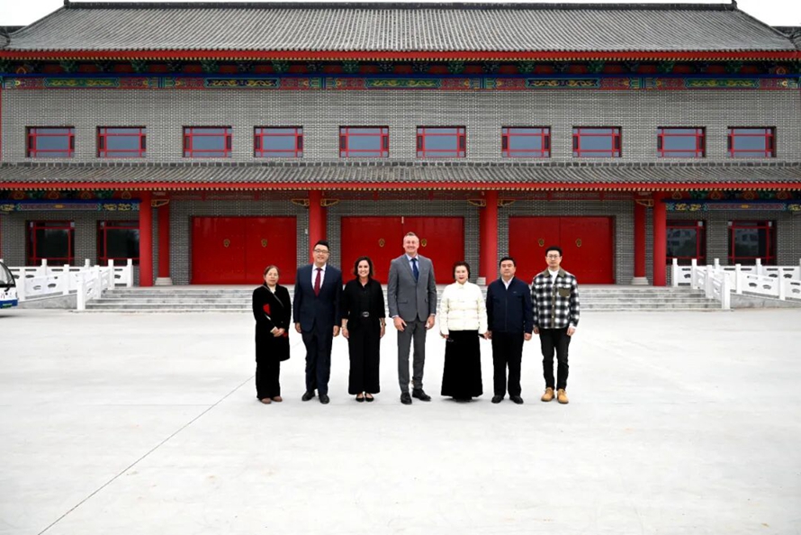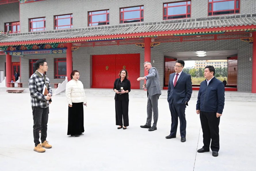在孙建忠院士、习伟教授的陪同下,大卫·柯林斯一行先后参观了河北外国语学院学生公寓、封龙书院大学堂等场所。代表团边走边看,详细询问校园建设规划、设施配套及使用情况,对学校将智慧校园建设、中华优秀传统文化传承与国际化办学有机融合的创新实践给予高度评价,认为这一模式为学生成长营造了优质环境,展现了鲜明的办学特色。