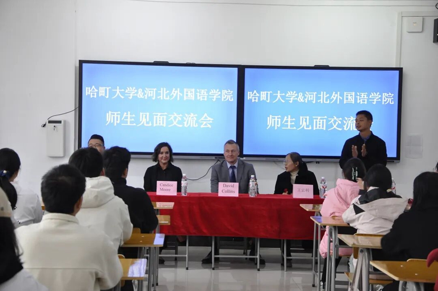 在随后召开的座谈会上,双方就办学理念、人才培养、国际交流等内容展开深入探讨。大卫·柯林斯副校长高度肯定河北外国语学院的办学成效,他表示:“河北外国语学院为学生提供了丰富的实践平台,国际学生在这里不仅能接受优质教育,还能收获多元文化体验,这让我们深感欣慰。”他特别提及,此次来访见证了学校的快速发展,“此前来访时看到的规划蓝图,如今已逐步变为现实,这种兼顾效率、质量与文化融合的‘河外速度’令人惊叹,充分展现了中国高等教育发展的活力。”