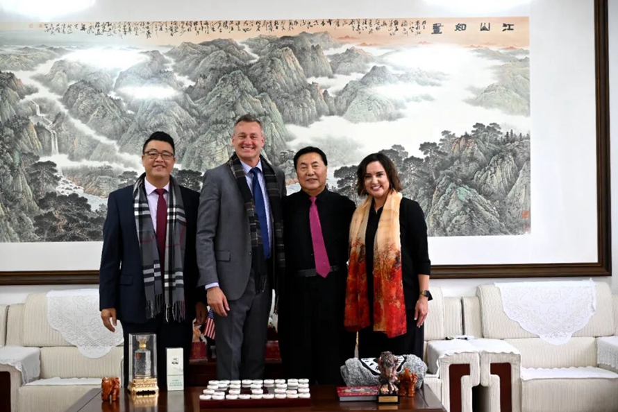10月21日,美国哈丁大学副校长、国际教育学院院长大卫·柯林斯一行三人到访河北外国语学院。河北外国语学院董事长、校长孙建忠院士,副董事长、执行校长习伟教授热情接待了代表团,双方就深化校际合作、推进留学生交流等议题展开深入交流。