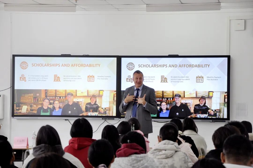 访问期间,代表团还走进英语学院,大卫·柯林斯副校长以专题讲座形式,系统介绍了美国哈丁大学在师资队伍建设、招生政策、研学项目开发及课程体系构建等方面的特色优势,并通过校园环境宣传片展示了学校风貌,为两校师生交流搭建了桥梁。在封龙书院大学堂,代表团被浓厚的文化底蕴所感染,不时驻足参观并拍照留念;在24号学生公寓楼,现代化的住宿设施和人性化的管理服务也获得代表团一致好评。