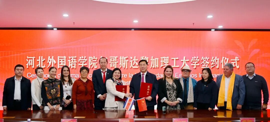 论坛期间,河北外国语学院与哥斯达黎加理工大学举行签约仪式。此次签约标志着两校合作进入制度化、常态化发展新阶段,为双方后续在科学研究、师生互访、教学资源共享等领域开展深度合作筑牢制度根基。
