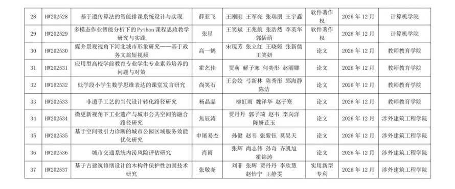 根据《河北外国语学院关于2025年度校级科研课题立项申报工作的通知》精神,经过个人申报、部门初审、科技处形式审核、评审专家审核出示意见、个人修改完善、评审专家最终复审,共确定2025年度校级科研课题立项项目37项。其中计算机学院立项10项,传媒学院立项7项,国际医学院、教师教育学院、涉外建筑工程学院各立项4项,国际艺术学院立项3项,国际航空旅游学院、国际商学院各立项2项,国际语言教育学院立项1项。