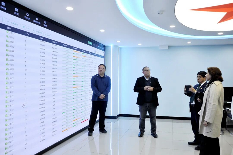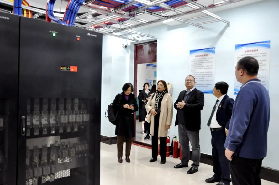 在河北外国语学院校长外事助理、副校长杨振博士,教学质量监控办公室巴黎处长的陪同下,代表团先后参观了万国图书馆、专业实训室、封龙书院大学堂、智慧大脑、大数据中心及管理决策舱等。在全面感知河北外国语学院实战化教学特色与智慧校园建设亮点后,秘鲁里卡多•帕尔玛大学代表团一行对河北外国语学院董事长、校长孙建忠院士的办学理念、教育家情怀、国际视野和全球站位表示高度赞扬,对学校未来成为世界名校充满信心。