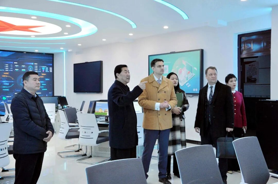 在孙建忠院士的陪同下,涅奇塔伊洛一行先后参观了学校智慧大脑、大数据中心、管理决策舱、封龙书院大学堂、专业实训室、智能会议室及录播室、录音棚等教学科研设施。代表团对学校整洁优美的校园环境、功能完善的教学场馆和先进的智能化教学设备给予高度评价,认为学校在办学硬件建设和人才培养保障方面成效显著,为开展高质量教育合作奠定了坚实基础。