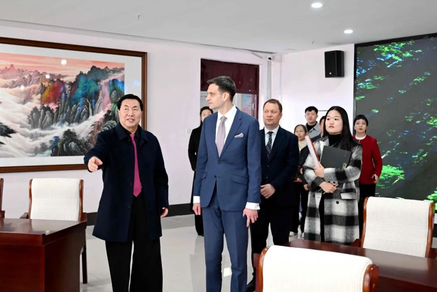 河北外国语学院董事长、校长孙建忠院士向代表团详细介绍了学校的办学理念、发展历程、学科建设特色以及国际合作与交流成果。他表示,河北外国语学院始终秉持开放办学理念,积极搭建国际教育合作平台,希望以此次访问为契机,进一步加强与乌克兰教育机构的联系,推动双方在人才培养、学术交流等领域开展务实合作。