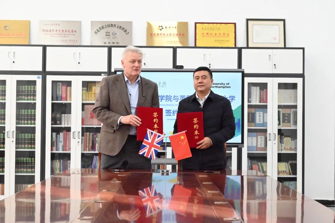 11月13日下午,英国北安普顿大学商学院教授、北安普顿郡企业发展导师艾德里安·普赖斯·霍德华,国际处院校合作项目主任于丽娟一行到访河北外国语学院。河北外国语学院外事副校长陈伟、国际处副处长王云利热情接待代表团,双方举行亲切会谈并签署合作协议,就进一步深化两校交流合作达成广泛共识。