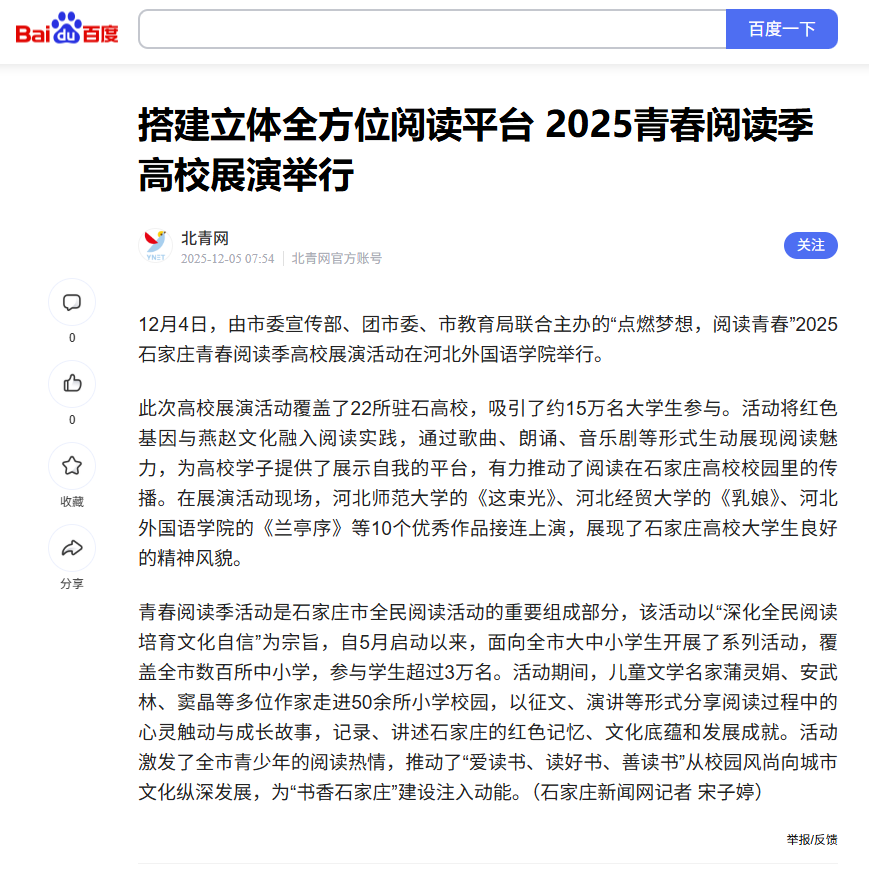 搭建立体全方位阅读平台 2025青春阅读季高校展演举行