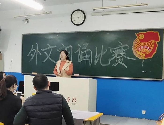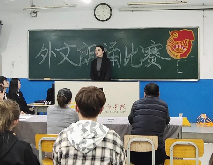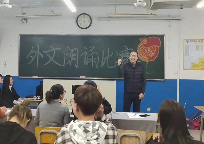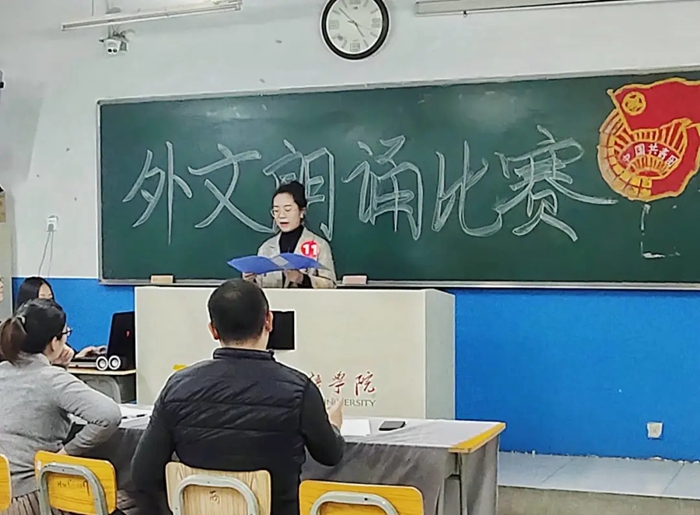 朗诵比赛开始,冉东青老师对口语的重要性和学生今后发展方向做了总结讲话。