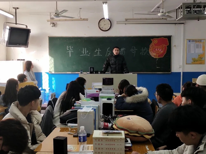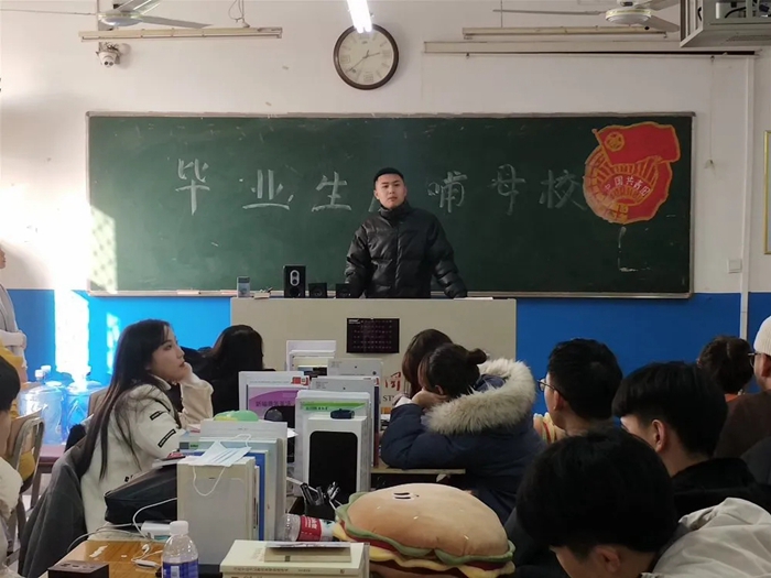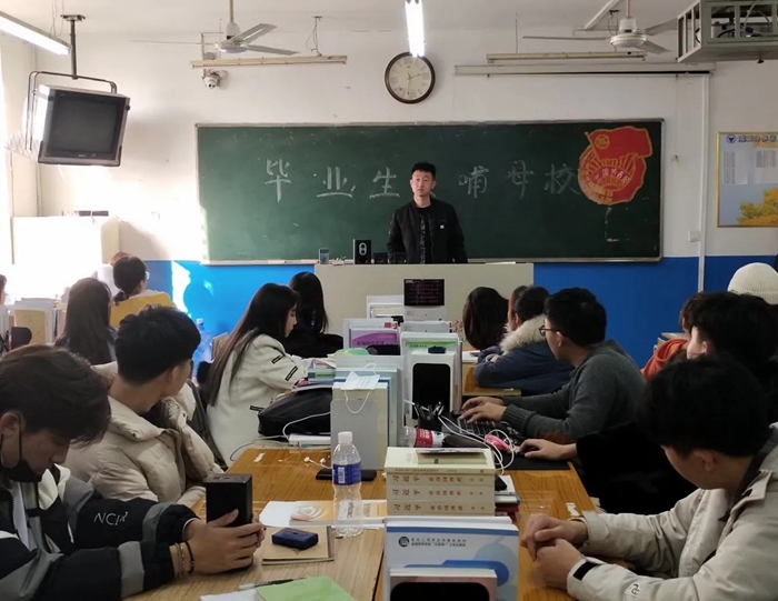 其次是张江浩学长,张江浩学长在校期间曾担任纪检部干事后升任为学生会副主席。张江浩学长在本次"毕业生反哺母校"活动里与我们分享了他在学生会中的工作,以及在河外期间所获得的荣誉。在实习公司石家庄德祐凯创经纪有限公司时,张江浩学长一心一意对待工作,即使身边的实习生都因没有业绩而放弃了这份工作,但是张江浩学长却依旧坚持。