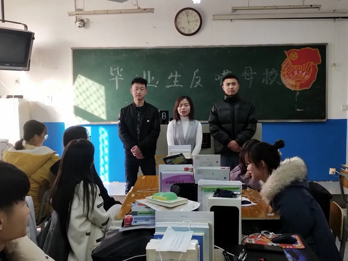 2020年12月4日下午两点国际商学院在综合楼314教室开展了"毕业生反哺母校"活动。参加本次活动的有董闪闪老师,2018级市场营销王路平,2018级电子商务张江浩以及2020级市场营销全体同学。