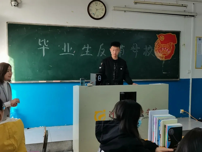 首先是王路平学长,王路平学长在校期间曾担任纪检部干事后升任为学生会副主席。王路平学长在本次"毕业生反哺母校"活动里与我们分享了他在学生会中的工作,以及在河外学习期间所获得的荣誉。在实习公司星曌河北教育科技有限公司时,王路平学长专心致志,正因王路平学长的认真,使他在实习期间给公司带来了不错的效益。